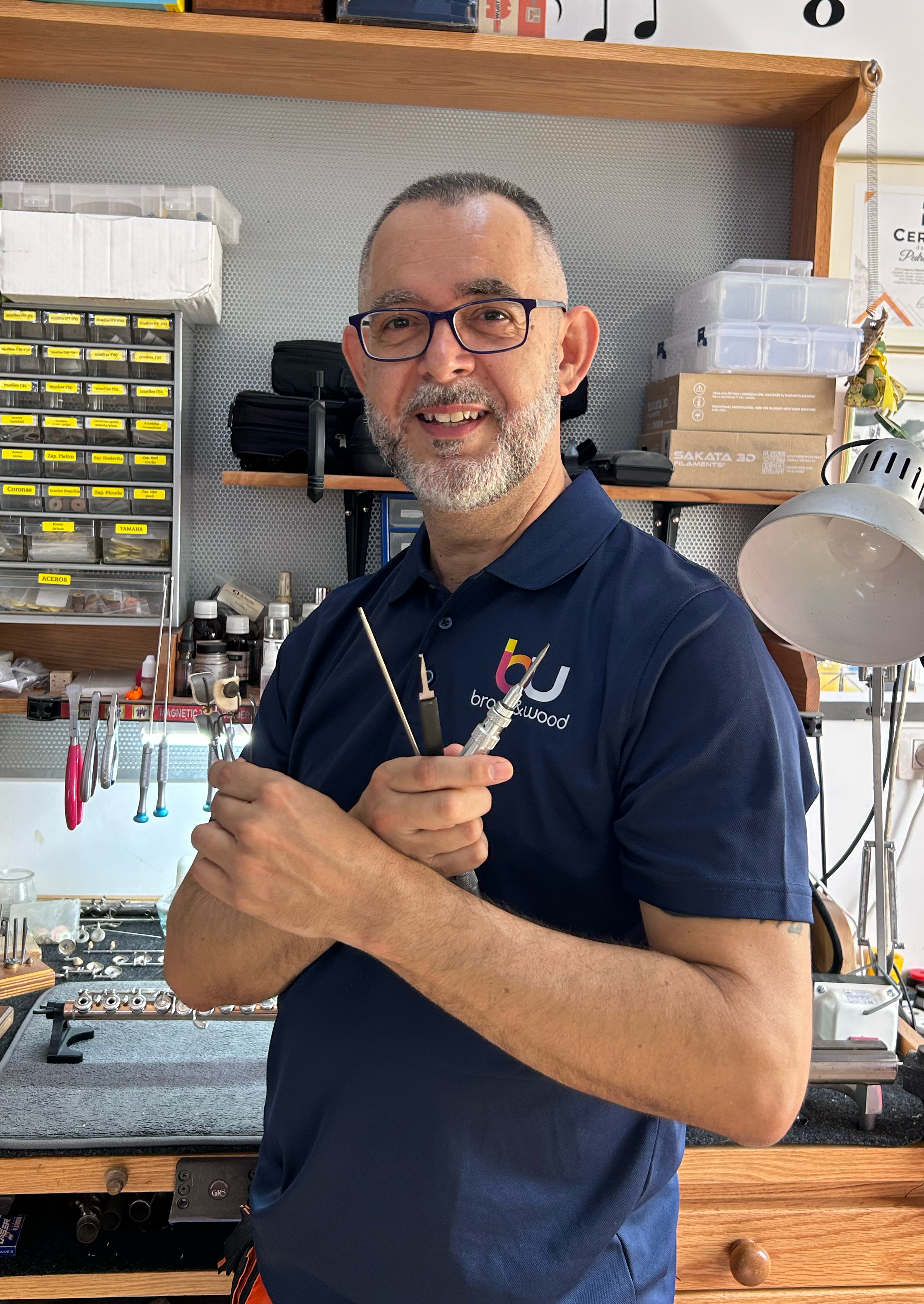 No es solo un lugar de trabajo: es el corazón de Brass&Wood. Aquí reparamos, personalizamos y fabricamos accesorios, siempre con el mismo objetivo en mente: que cada músico pueda disfrutar de su instrumento en las mejores condiciones.